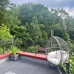 1-pokojowy Szmaragdowa Sowa wychodzi na miasto i znajduje się 6 min pieszo od Ratusza w Wałbrzychu. Apartament o powierzchni 35 m^2 z tarasem z widokiem na ogród mieści się w minucie jazdy od Muzeum Porcelany w Wałbrzychu.